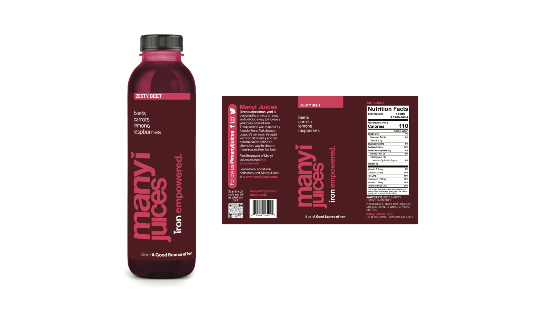 MANYI Juices are plant-based, a good source of iron, and have no preservatives or sugar added. MANYI Juices is on a mission to provide women with an easy and delicious way to increase their daily dose of iron.